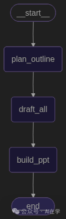 workflow.add_node("build_ppt", build_ppt) # 调用 python-pptx 生成文件