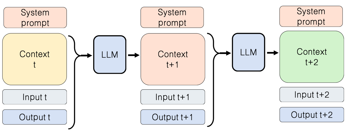 \[\begin{aligned} & O_t = LLM(I_t, C_t) \\ & C_{t+1} \leftarrow C_t \mid I_t \mid O_t \end{aligned}\]核心痛点: 符号”$\mid$”代表简单的拼接。随着循环进行,上下文 $C_t$ 的长度会迅速膨胀,最终超出大语言模型的窗口上限,或因冗余过多直接拖垮推理精度。
